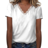 Chinese name: Women's digital printing imitation cotton short sleeve V-neck short T-shirt lace